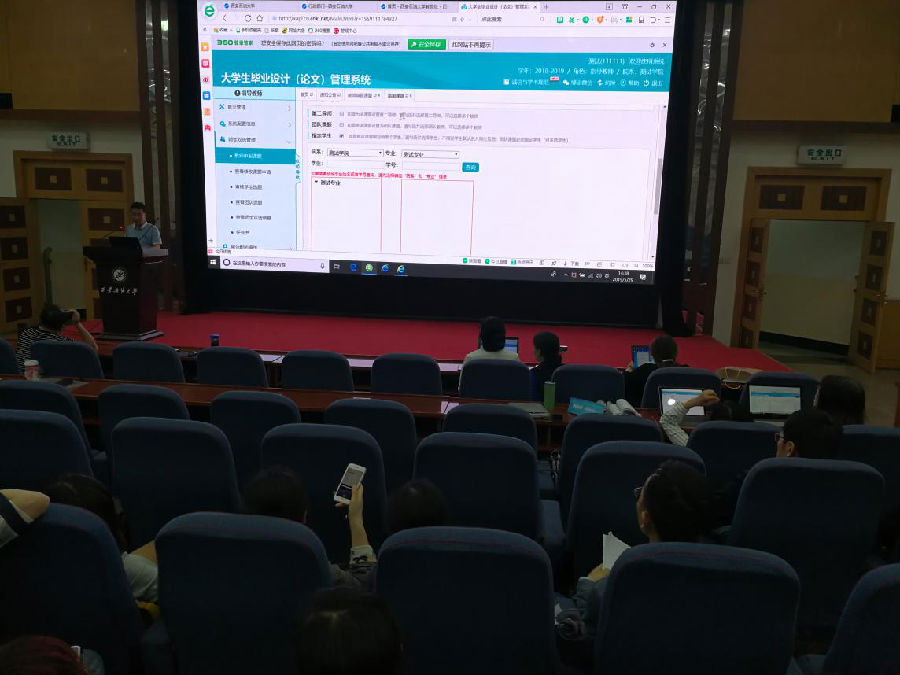 此次培训得到了教务处的大力支持,教务处实践教学科刘晓东老师结合公司外语专业特点,对公司外语专业毕业论文网上管理进行了详细讲解,并现场解答了指导老师提出的问题。