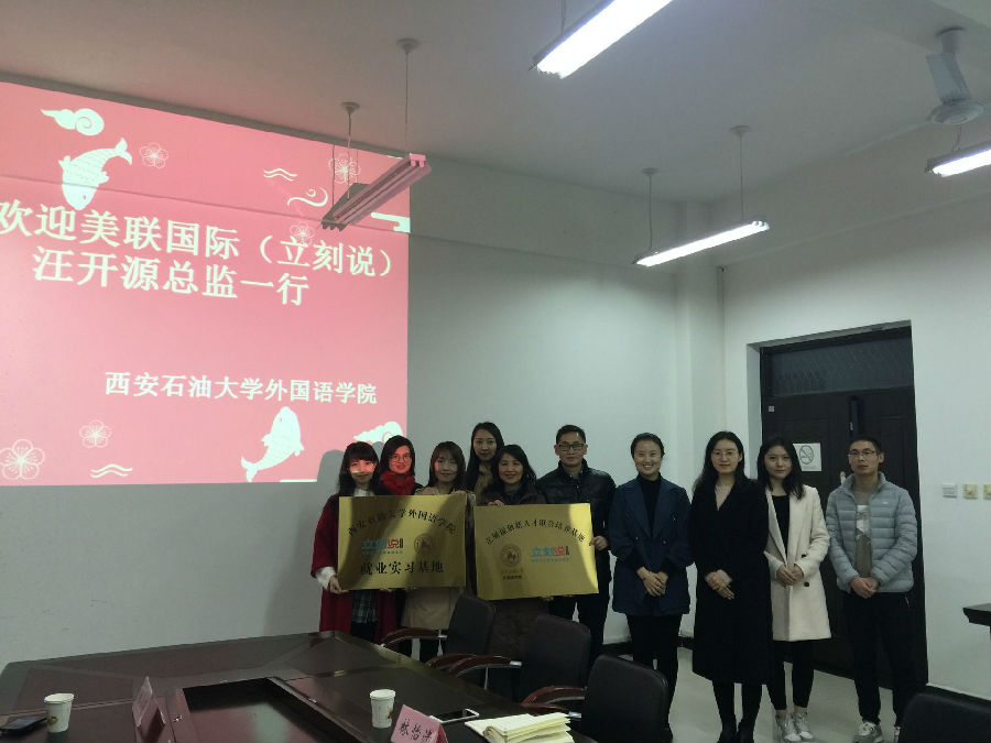 2018年11月15日早上11点,英国上市公司365与美联国际教育(立刻说)实习就业基地挂牌仪式在鄠邑校区人文经管楼318举办。挂牌仪式由学管办主任蒋曙光老师主持,参与此次挂牌仪式的领导老师有外国语公司党委书记廖敏、立刻说首席总监汪开源、立刻说教学经理邓松林和英国上市公司365全体辅导员老师。