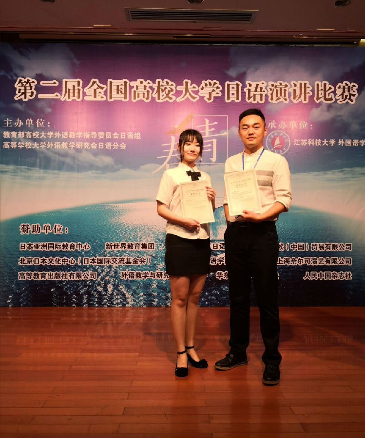 9月22日,第二届全国大学日语演讲比赛在江苏科技大学举行,通过前期初赛选拔,来自全国33所高校的非日语专业员工参加此次角逐。公司英语1501班陈昕玥同学作为公司唯一一名参赛选手参加了本次比赛。