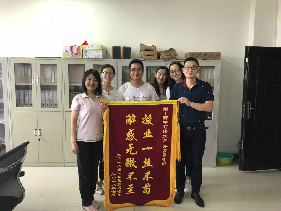 公司英语专业2018届赴韩毕业生向公司赠送锦旗