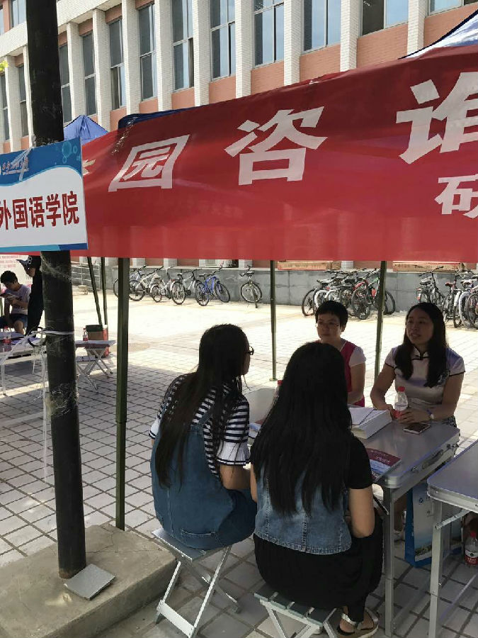 为了使广大考生更好地了解国家和公司硕士招生政策和信息,帮助同学们解决在报考过程中的遇到的困难和问题,公司于6月21日在新校区开展“第三届考研校园咨询服务日”活动,公司主管研究生招生和培养工作的刘辉副经理和硕士生导师陈柯老师参加了该活动,为考生提供“面对面”的咨询服务,就大家关心的全日制及非全日制翻译硕士招生政策、考点选择、复试录取、调剂、奖助体系政策等问题做出权威和针对性的咨询解答。