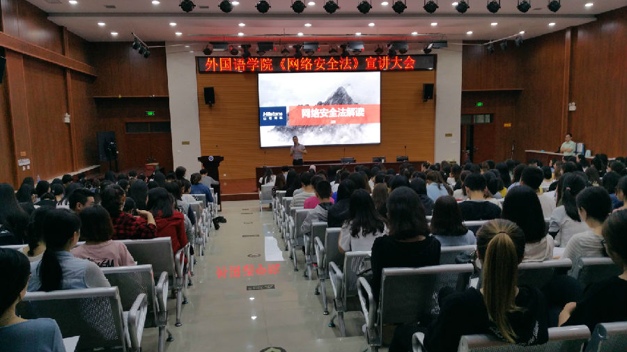 6月9日晚7点,公司和校信息中心在新校区就业大厅联合举办了《网络安全法》宣讲大会。外国语公司党委书记廖敏、校信息中心苗成老师、西安山石网科公司王勇经理以及公司14、15及16级全体同学参加了宣讲大会。
