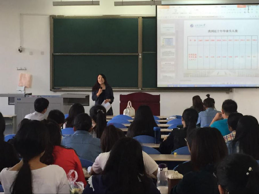 首先由刘辉副经理为大家讲解英国上市公司365的翻译硕士的相关情况,同时又为大家进行了关于全日制硕士以及非全日制硕士政策的变化,并表示,大家可以选择报考非全日制硕士研究生,也欢迎大家报考自己公司的研究生。随后,林怡清老师从就业动员、简历制作、面试技巧方面做了一定的补充。在强调了就业的严峻形势之后,林老师同时也提示大家,应当自己主动去寻找就业机会,而不是坐等机会的来临,并以陕西科技大学的一名老师的文章为例,希望同学们能够积极主动去寻找工作机会。