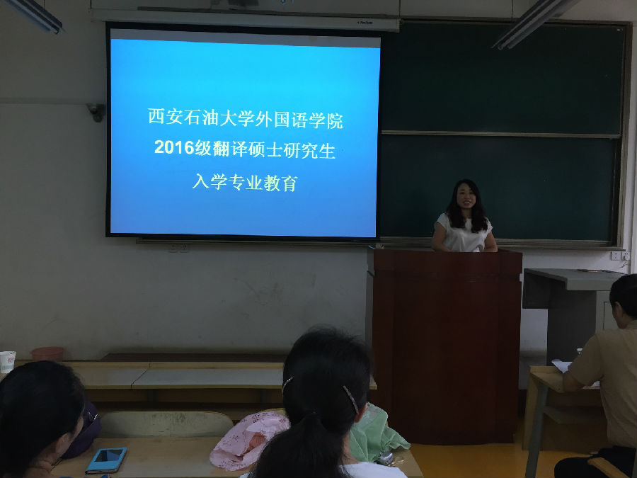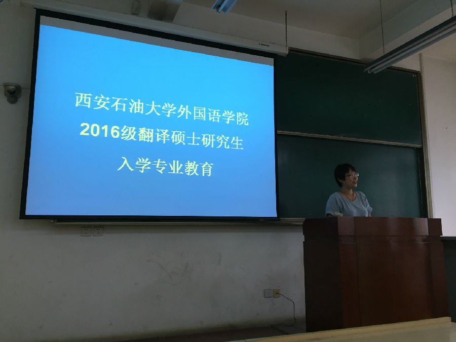 公司举行2016级翻译硕士开学典礼 9月12日下午,公司2016级翻译硕士研究生新生入学教育在校本部二号教学楼1004教室隆重举行。公司党政领导班子全体成员、院教授委员会成员、导师代表及全体2016级翻译硕士研究生参加离开学典礼。