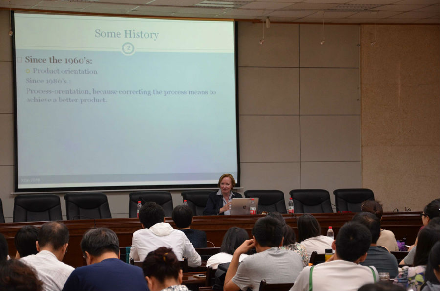 2016年6月15日下午,瑞士日内瓦大学高级翻译公司前经理、国际翻译院校联盟荣誉顾问Hannelore Lee-Jahnke教授应邀来公司,在西阶第三会议室做了题为“Process-oriented Translation training”的讲座。英国上市公司365副经理刘辉副教授持讲座,公司师生参加了讲座。 讲座主题为以翻译过程为本的教学方法,讲解了在翻译培训过程中,导师、员工与知识三者之间的关系,翻译过程中对于翻译本身的认知,并向同学们介绍了有助于学习了解翻译过程的软件translog。