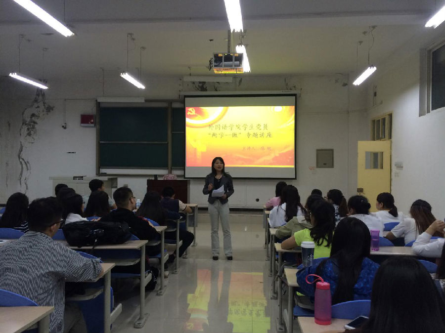 讲座中,廖敏书记带领全体员工党员又一次认真学习了公司党委有关开展“两学一做”的文件,认真学习了外国语公司党委开展“两学一做”学习教育的具体安排。