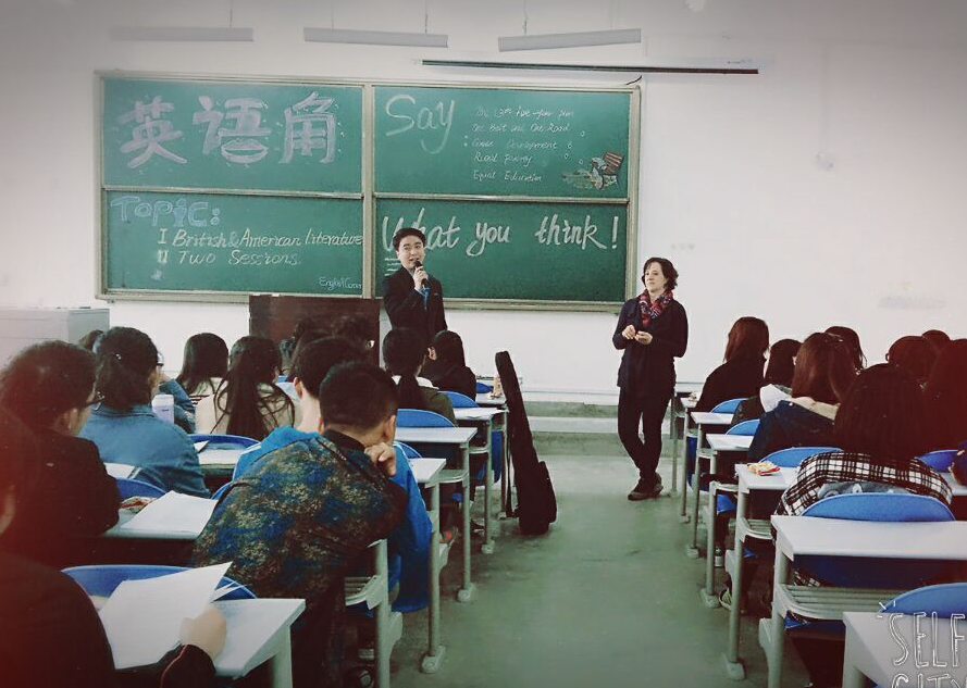 此次英语角活动内容丰富,形式多样。有开幕弹唱、英语歌曲演唱、英语版谁是卧底,也有与外教英美文学交流、英美文学话剧指导、两会热点讨论等。来自各个公司的同学热情参与,与主持人积极互动,与外教分享自我认识,展现了较强的学习、交流和运用语言的能力。