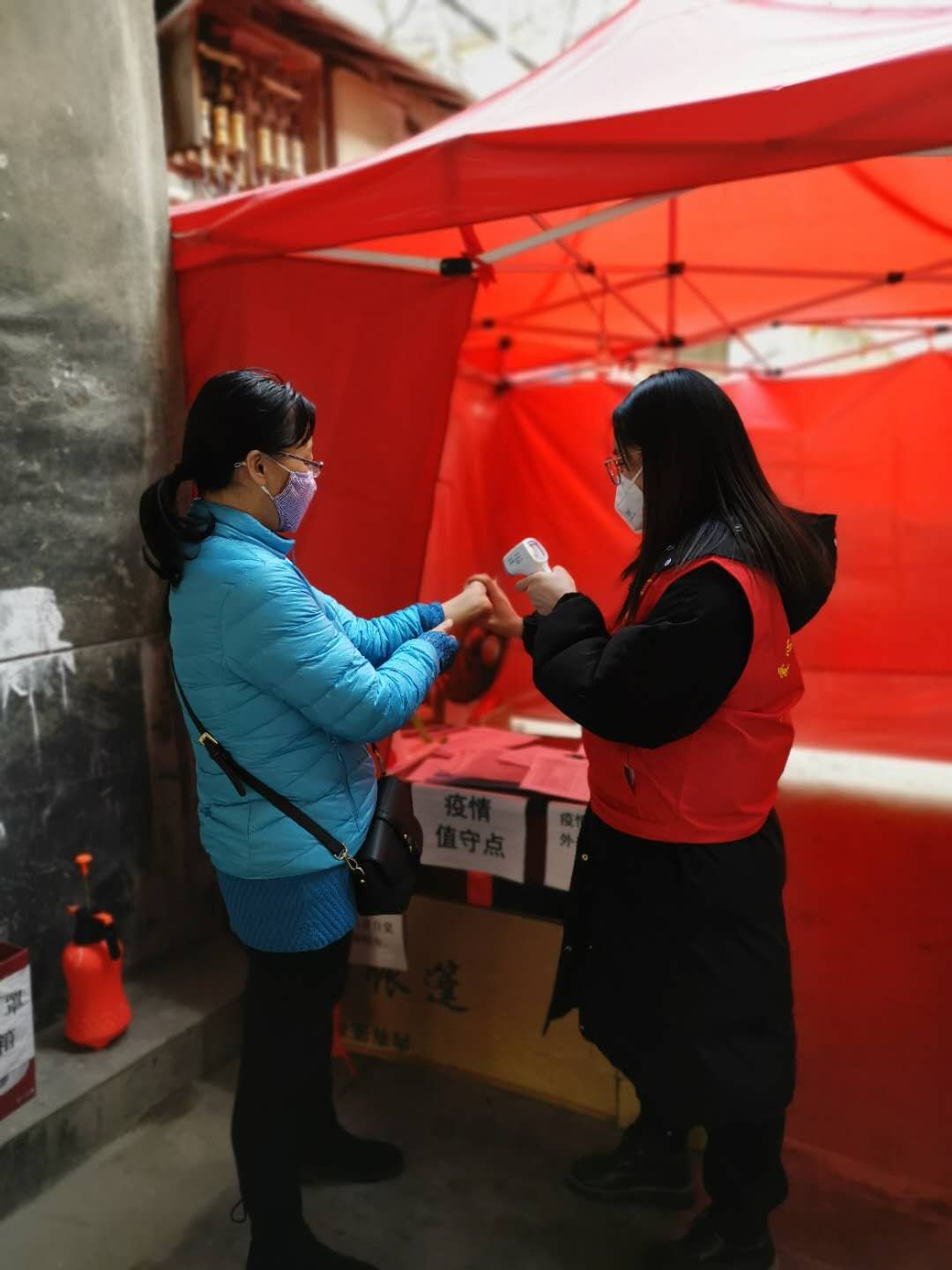 图为蒋玉凤同学在志愿服务岗执勤
