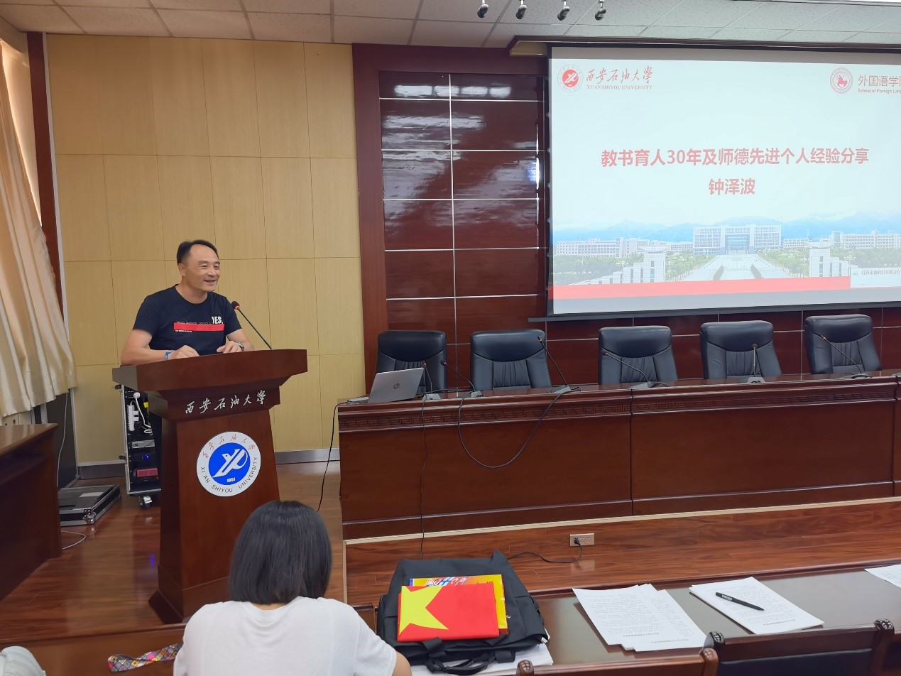 四、选树典型,强化榜样示范。公司积极选树典型,扎实开展师德师风评选工作,涌现出一批在教学岗位潜心育人的先进典型,俄语系、英语系获评校级师德先进集体。教师节期间,公司“教书育人30年”及“师德先进个人”钟泽波老师与全院教师分享30年从教的师者初心和育人使命,交流了“爱心、耐心、恒心、信心、操心”育人法,发挥了典型示范作用。