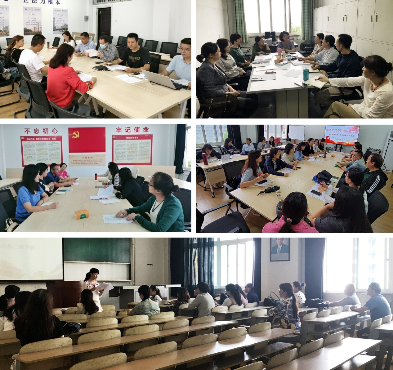 五、专题研讨,强化内生动力。各教工党支部、各系部召开专题学习和研讨会,集中学习师德师风专题资料以及张桂梅、黄大年等先进事迹,并结合教学科研实际,从师德师风建设、课程思政、专业教育、人才培养等方面进行交流研讨,推动学思践悟。
