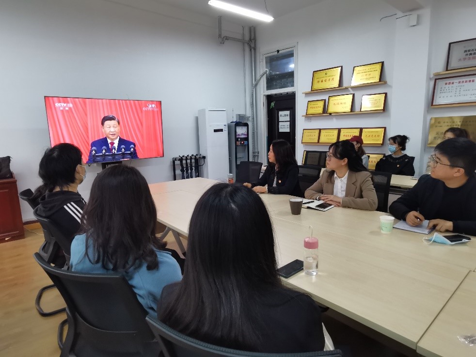 10月16日上午十点,中国共产党第二十次全国代表大会在人民大会堂开幕,大会主题是:高举中国特色社会主义伟大旗帜,全面贯彻习近平新时代中国特色社会主义思想,弘扬伟大建党精神,自信自强、守正创新,踔厉奋发、勇毅前行,为全面建设社会主义现代化国家、全面推进中华民族伟大复兴而团结奋斗。外国语公司党委组织全公司党员师生分别在雁塔校区、鄠邑校区通过线下集中与线上腾讯会议相结合形式观看开幕会,深入学习党的二十大精神,并结合自身学习、工作实际,热议报告精神,交流思想感悟。