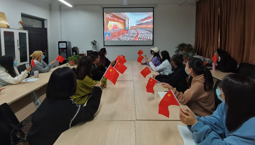 员工党员、翻译2001班屈仪梅:Asthe opening ceremony of 20th National Congress of the CPC opens on Sunday at the Great Hall of People in Beijing, we pre-party members watched the live broadcast of the opening ceremony together with pride and excitement.