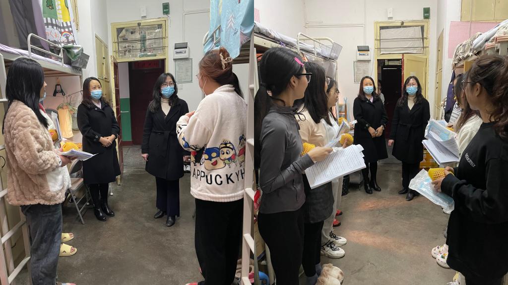 11月27日晚,公司党委书记田虹霞、副经理刘辉一行,深入雁塔校区员工公寓看望慰问在校研究生,了解员工面临的实际困难,并为员工送去医用口罩、苹果等慰问品。研2021级辅导员陶李陪同走访。