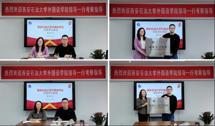 座谈会后,田虹霞和刘辉分别代表公司与译国译民集团西安公司签订就业实习基地、研究生联合培养基地协议并授牌。