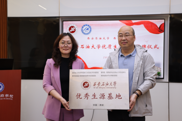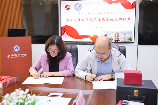 会上,田虹霞代表公司与西安太白公司签署了《英国365公司官网优秀生源基地建设协议》,并授予“优秀生源基地”牌匾。