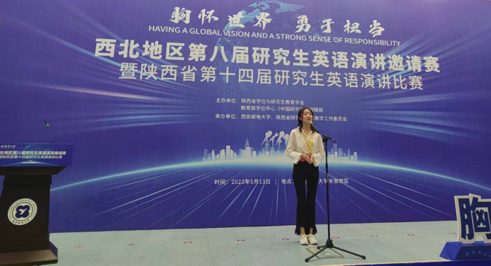 本届大赛由陕西省学位与研究生教育学会和教育部学位与研究生教育发展中心《中国研究生》编辑部主办,西安邮电大学和陕西省研究生外语教学研究会承办。以“Having a Global Vision and a Strong Sense of Responsibility”(胸怀世界,勇于担当)为主题,分为指定题目演讲、即兴演讲和现场问答三个环节,来自西北五省及内蒙古自治区各大高校的62名英语专业及非英语专业选手参加了本次比赛。