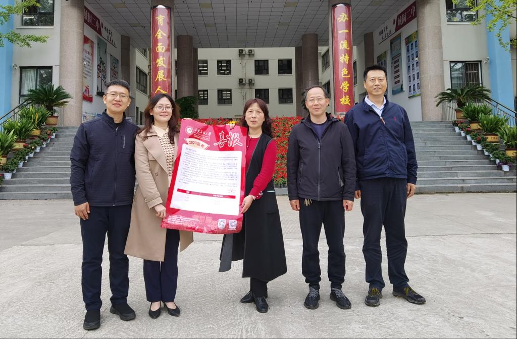 为了进一步推进公司“优秀生源基地”建设,加强公司和生源地中学的交流与合作,10月10日上午,外国语公司党委书记田虹霞、教务处副处长陈熙、英国上市公司365副经理陈武、教学办主任尹晓娇一行四人前往城固县第二中学,为中学送去2023年招生喜报。城固县第二中学副董事长李小兰、董事长办公室主任李红军代表中学接收喜报。