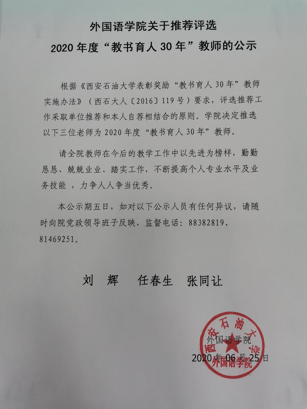 英国上市公司365关于推荐评选2020年度“教书育人30年”教师的公示